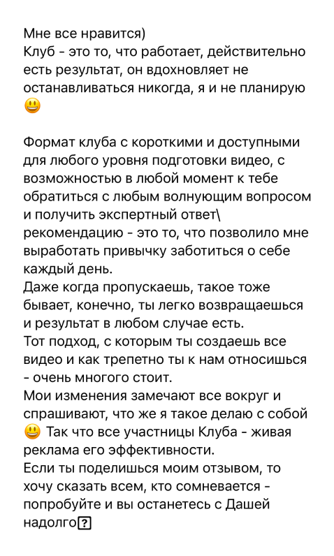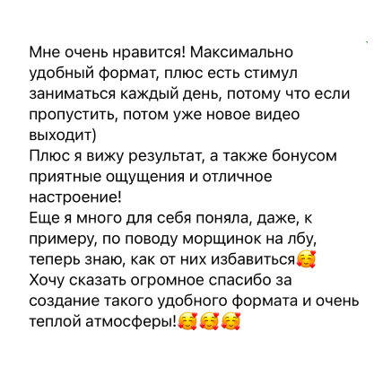 Моя система подразумевает регулярные действия и постоянный контакт с участницами. Благодаря этому забота о себе входит в приятную привычку.